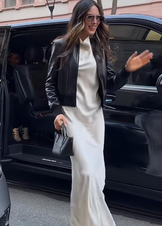 即使是一袭简单的白色长裙搭配黑色皮衣,穿在她身上也格外夺目,1.75米的身高,纤细且有力量感,宛如天生的衣架子,能轻松驾驭任何礼服。