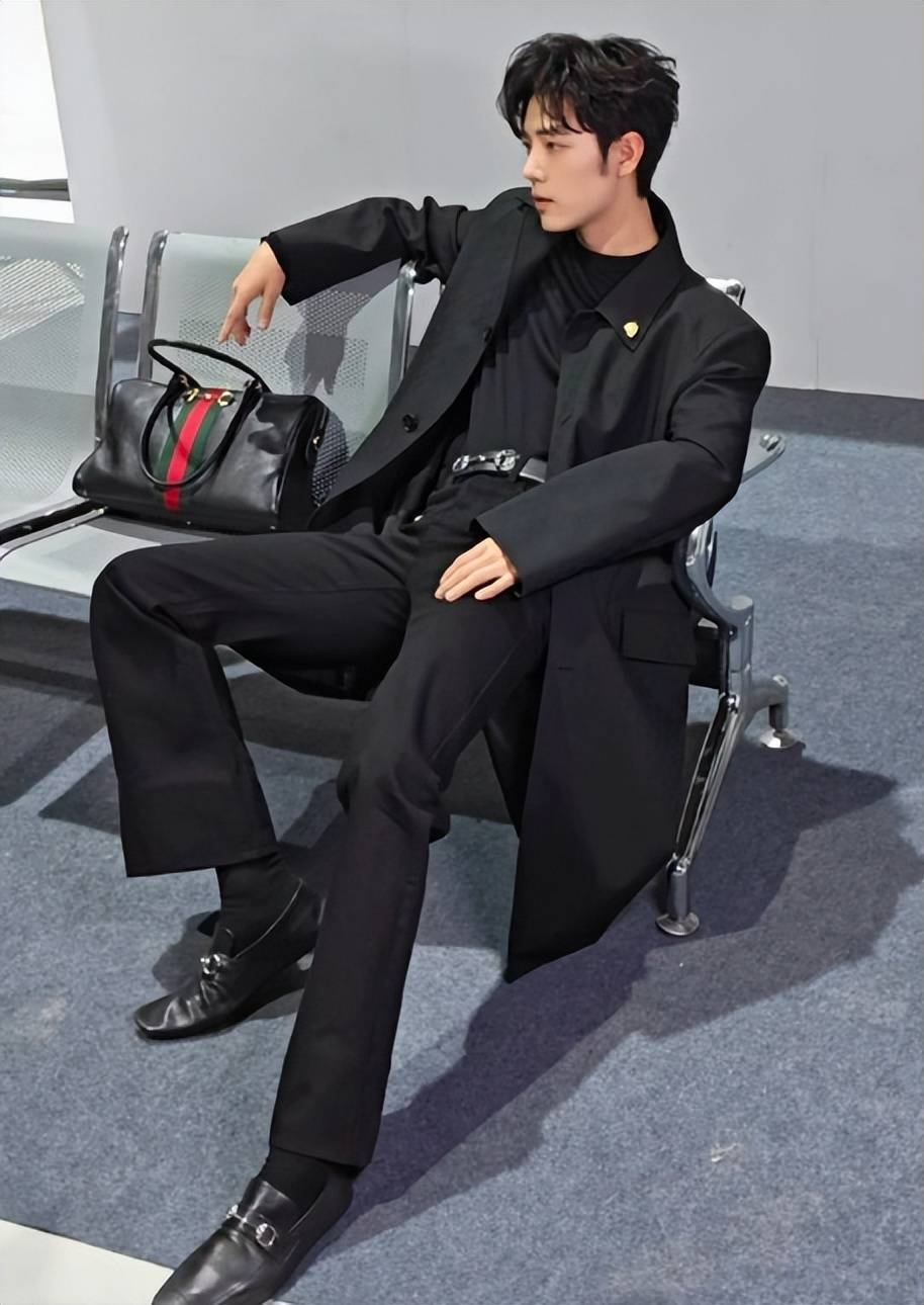第二套造型同样出色,一身纯黑色大衣搭配同色系长裤,展现出他宽肩窄腰的优越身材,随便往椅子上一坐,气场强大到爆炸,轻松吊打全场。